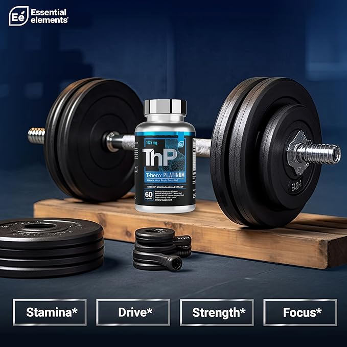 Essential Elements T-Hero Platinum Male Health Supplement for Mens Health - Muscle Growth Support & T-Health with Shoden Ashwagandha, Shilajit, DIM & More - Gym Supplements for Men - 60 Caps