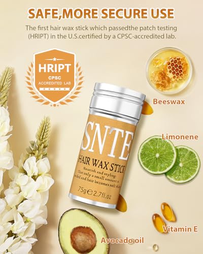 - 【Styling & Smoothing Frizz】Quickly tame flyaway hair. SNTE Hair Wax Stick is rich in castor oil, which effectively smooths hair frizz, edge control... You can directly use the hair wax stick to apply it on the area of your hair that needs to be controlled.