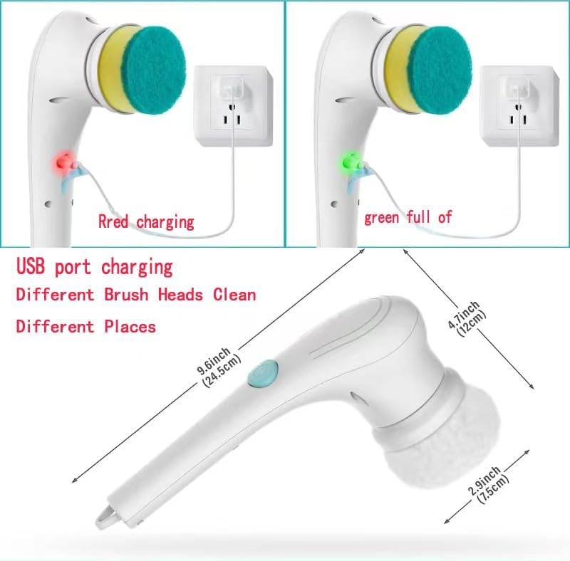 - updated version 5 in 1 Multifunctional Electric Spin Scrubber: The rechargeable 5 in 1 cleaning brush includes 5 replaceable brush heads which are easy to remove and replace. Suitable for cleaning household kitchens, living rooms, bathrooms, floors, tile,furniture, and other places. It can well help you with various sanitation and cleaning tasks. These brush heads meet of daily cleaning needs.