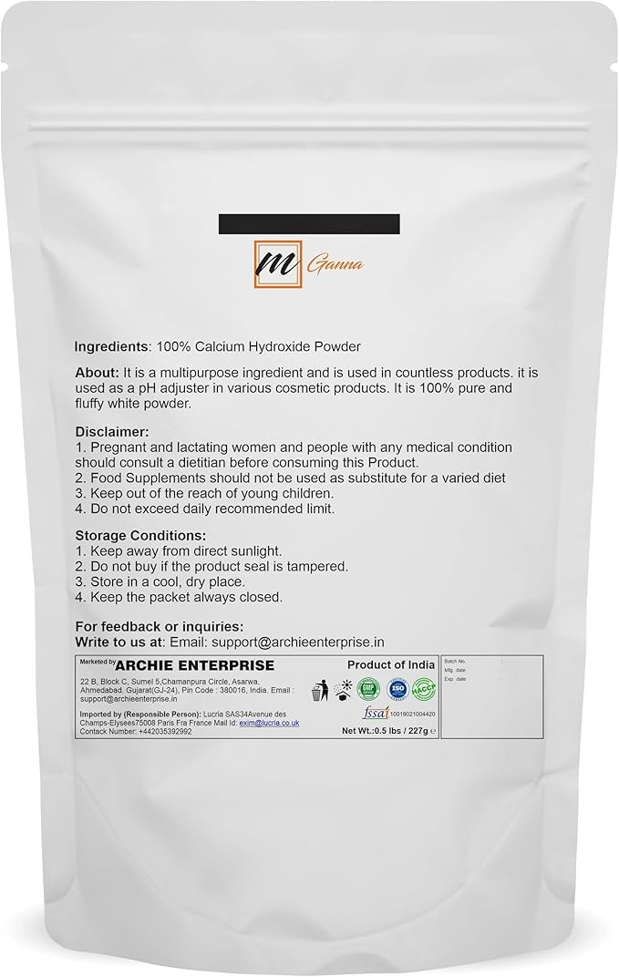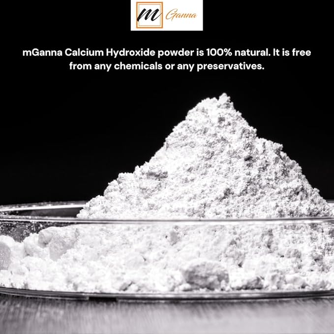 - mGanna Calcium Hydroxide powder is 100% natural. It is free from any chemicals or any preservatives.