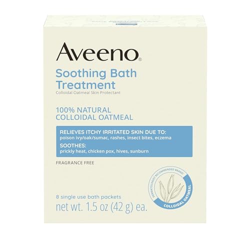 - 8-count of single-use, individually wrapped packets of Aveeno Fragrance-Free Soothing Bath Treatment with 100% Natural Colloidal Oatmeal for temporary protection and relief of dry, itchy, and irritated skin