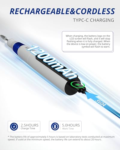 - High-Definition LED Display: Our wireless nail files feature a high-definition LED display that shows real-time speed, power level and rotation direction, making it easy for professional nail technicians to create stunning acrylic and gel nail artwork with ease