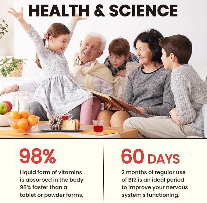 - HIGH ABSORPTION B12 COMPLEX: Our Triple Vitamin B12 liquid supplement has Methylcobalamin 6000 mcg, Adenosylcobalamin 2000 mcg, and Hydroxocobalamin 2000 mcg. Our liquid vitamin b12 formula is the most pure, active, and bioavailable, which can help with better energy, better brain health, and an increased mood
