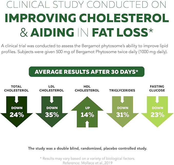 - CLINICALLY SHOWN TO IMPROVE CHOLESTEROL & REDUCE VISCERAL FAT + CLINICALLY VALIDATED DOSE: In clinical studies our Citrus Bergamot Phytosome and Grape Seed Extract were clinically shown to support overall cholesterol, healthy weight management & blood pressure. All doses within the formula have been clinically validated to deliver proven benefits.*