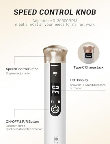 - Nail Drill Kit With Stepless Adjustable High-Speed: Superior SM220E Nail Drill is equipped with a coreless motor with a high rotation speed of up to 30,000 RPM that allows you to adjust the speed of your nail drill.Comes with 6 kinds of metal drill bits and 1 ceramic bit , Whether you need to buff, shape or polish your nails, our adjustable high-speed function can handle it all. It is a perfect multi-functional nail drill gift set for both professionals and beginners.