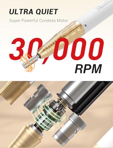 MelodySusie Portable Nail Drill,Professional 30000 RPM Cordless Electric Nail File for Acrylic Gel Nails,SM220E Rechargeable E-file Set Manicure Pedicure Tool with Nail Drill Ceramic Bit,Sanding Bands