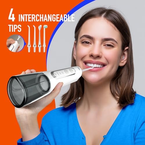 - 【Convenient Multi-Purposes Oral Health Care】 4 interchangeable tip for multi-purposes cleaning, including tongue cleaner for removing tongue coating, jet tip for high efficiency teeth cleaning and teeth brush tip for brushing. Suitable for braces cleaning and daily dental care.
