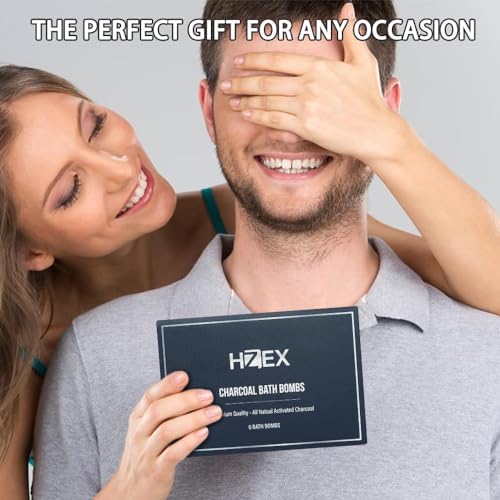 Bath Bombs, HZEX 6 Large Natural Luxury Charcoal Bathbomb Fizzes for Men Women, Organic Bath Bomb with Essential Oils and Shea Butter, Stress Relief and Relaxation, Detox with Charcoal Bathbombs