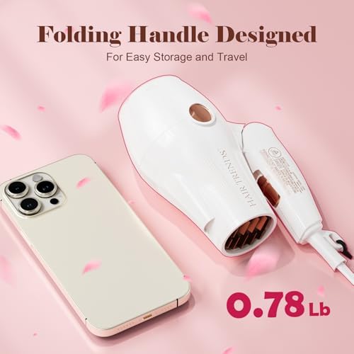 Travel Hair Dryer Mini with Diffuser&Concentrator,110~250V Dual Voltage Hair Dryer Blow Dryer Mini Size for European Travel, Portable Blow Dryers for Women and Men with EU Plug
