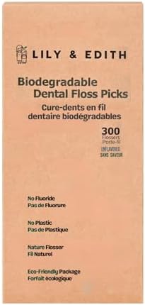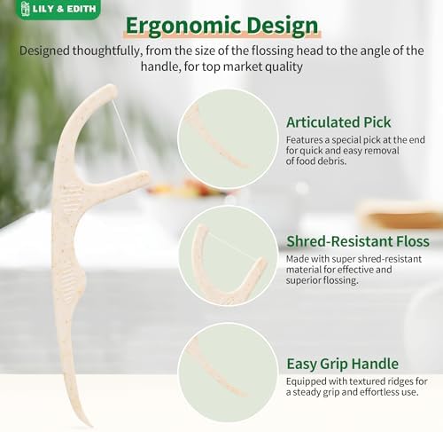 LILY & EDITH Plant Based Dental Floss Picks Adults and Kids 300 Counts, Fluoride-Free, Plant Based Straw Wheat, Earth Friend, Zero Waste Package, Shred Resistant (Unflavored)