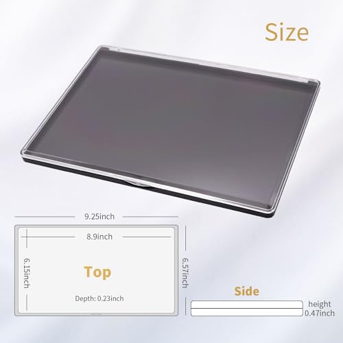- Magnetic Makeup Palette Size:Length Outside: 9.25inch,Width Outside: 6.57inch, Depth Outside: 0.47inch; Length Inside: 8.9inch ,Width Inside: 6.15inch, Depth Inside: 0.23inch, providing storage for up to 48pcs 1 inch diameter eyeshadows.