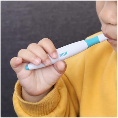 - 👶【NUK】:The flexible, textured tip can hold different foods and liquids, allowing you to introduce new tastes, temperatures, and textures. Also, the NUK brush’s contoured handle is easy to grip, keeping your fingers clear of teeth. NUK brushes are 5' x ¼' and latex FREE.