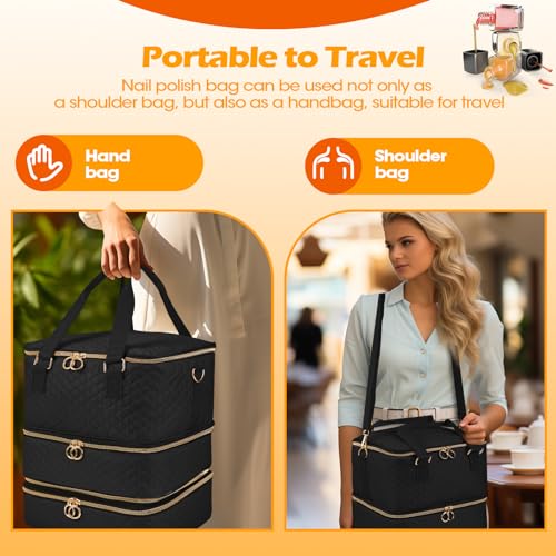 Nail Polish Organizer Case - Three Layer Nail Polish Storage Bag with Adjustable Dividers Holds 84 Bottles Nail Polish Nail Lamp Nail Kit Supplies Organizer Box - Black