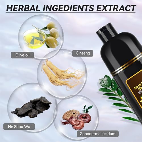 - 2025 Upgraded Formula: dark brown hair dye shampoo 3 in 1 features a gentle, natural herbal blend enriched with argan oil and olive oil for deep moisturizing and hydration to prevent dryness. Ingredients like ginger, reishi mushroom, ginseng, and Fo-ti promote hair growth and repair, leaving your hair healthy, smooth, strong, and shiny
