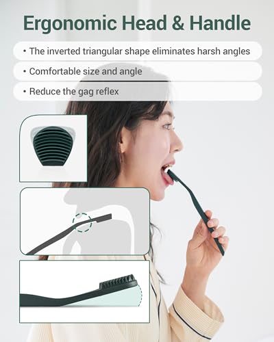 - DESIGN AND COLOR OPTIONS: Choose from four stylish colors: White, Gray, Deep Gray, and Deep Green. The DEARCUS Tongue Scraper not only adds a touch of elegance to your bathroom but also offers an ergonomic design for easy handling and effective cleaning, even for those with a strong gag reflex, thanks to its angle that prevents touching the back of the throat.