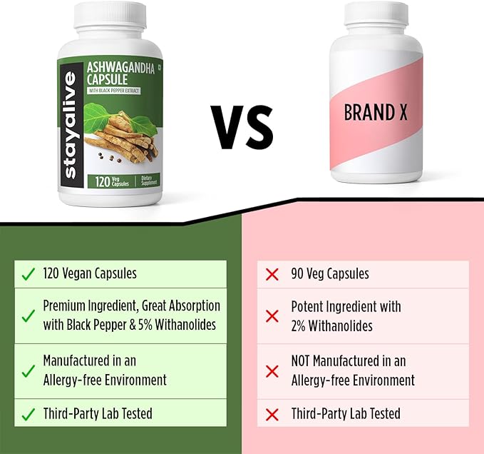 - ✨ Inspiring Health Mantras: At StayAlive, we believe in a holistic approach to wellness. By combining a balanced diet, regular exercise, and a mindful lifestyle with natural supplements like ashwagandha with black pepper extract, you can unlock your body's full potential. Let’s embrace vitality and resilience, one healthy choice at a time!