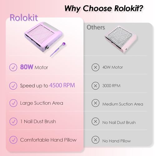 - Professional Salon-Grade Performance: Rolokit professional nail fan dust collector is equipped with a soft and smooth silicone hand pillow, which is designed for grinding nails and feet, providing you with a luxury manicure & pedicure experience, making your hands and feet feel comfortable