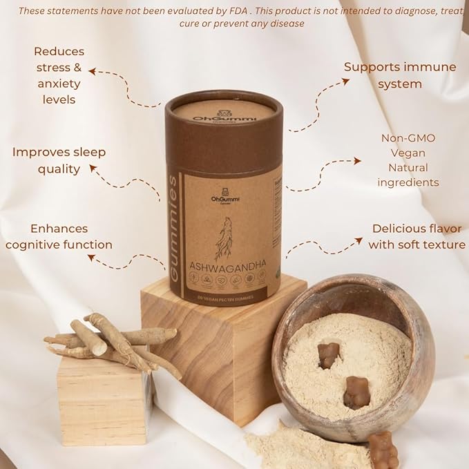 Ashwagandha 1500mg + Zinc, Vitamin D2 Vegan Gummies (Ashwagandha Roots)