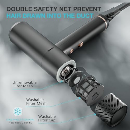 - Lightweight and Portable Hair Dryer: This is a sleekly designed lightweight and portable travel hair dryer with an ergonomic design weighing 1.21 lbs/549g, which is 20% lighter than other hair dryers. Blow dryer with diffuser is just 0.019 cubic feet, it is 10% lighter than other hair dryers. Hair dryers for women has a comfortable grip and simple buttons. Features a detachable secure filter mesh to prevent hair from entering the air duct, providing a safe user experience(Note: Please clean the dust regularly to avoid burning out the hair dryer)