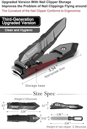 - 【Automatic Nail Clippings Storage】Equipped with a storage slot, the nail clipper features splash-proof functionality, enabling automatic storage of nail clippings. With a professionally designed integrated storage container, it eliminates gaps to prevent nail clippings from splashing, ensuring cleanliness and tidiness. Effortlessly collect nail clippings, providing exceptional convenience in usage.