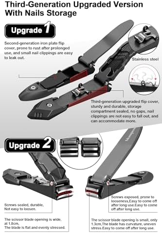 - 【Third-generation Upgraded】1. Wide blade opening, measuring 1.8cm. 2. Smooth and large blade, ensuring uniform force distribution. 3. Upgraded to stainless steel frame for durability. 4. Spacious nail clippings slot. 5. Enclosed design of nail clippings slot prevents nail clippings from leaking out. 6. Enclosed screws for enhanced durability and stability.