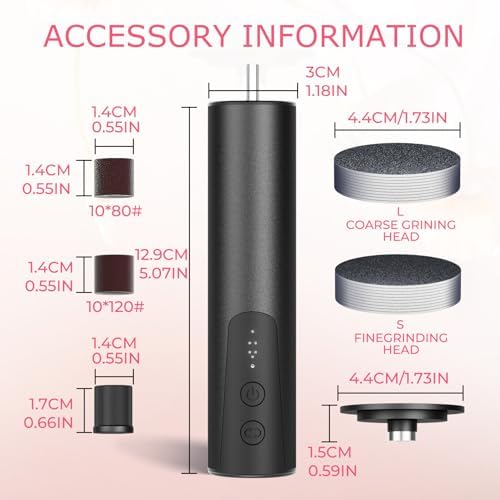 - 【Dual Functionality】Ranrose electric foot callus remover has 2 interchangeable heads, a design that enable it to be used not merely as an electric foot file for foot care need, but also as a nail drill for nails tips art need. Our electric callus remover for feet, with aluminium alloy body, has fashionable outlook and good practicality.
