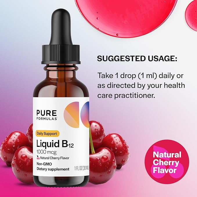 - Delicious, Convenient & Versatile: Compact 1 fl. oz. bottle with a suggested usage of just one drop (1 mL) daily, easy to incorporate into your daily routine for optimal nutrition with a refreshing cherry taste that makes taking your daily B12 supplement a delightful experience.