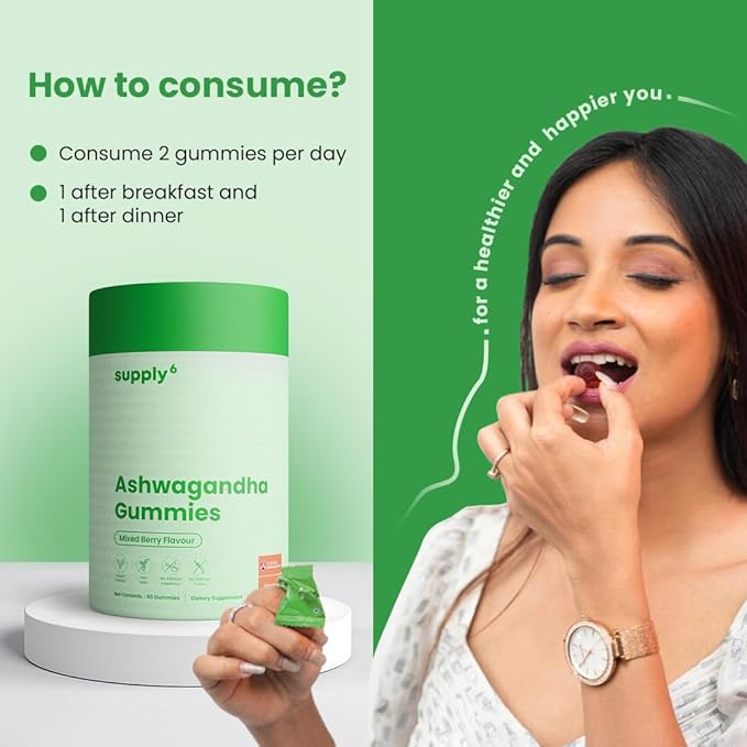 - Ashwagandha Powerhouse: Each Supply6 Ashwagandha Gummy contains a potent 500 mg of Ashwagandha, along with Vitamin D3 for enhanced absorption. KSM-66 Ashwagandha Root Extract is a renowned adaptogen known for its natural properties. It's your daily dose of healthy living.