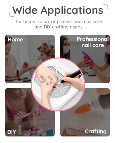 - Professional Dust Collector: 100% vacuum effect with high power suction fan and reusable fine filter, this dust vacuum can adsorb and collect the nail dust and fly ash from 360 degrees efficiently. Giving you and your customer a free-breathing environment while filing or polishing nails. A must-have nail accessory for personal use or use in the nail salon