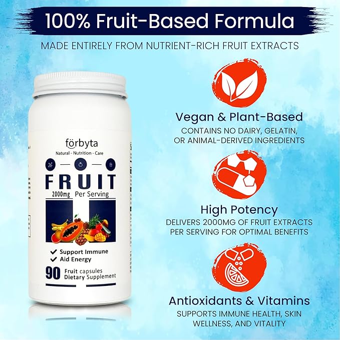 Fruits Supplement – Whole Food-Based Fruit Blend Capsules – Natural Antioxidant Support – Rich in Essential Vitamins – Non-GMO, Gluten-Free – 90 Capsules
