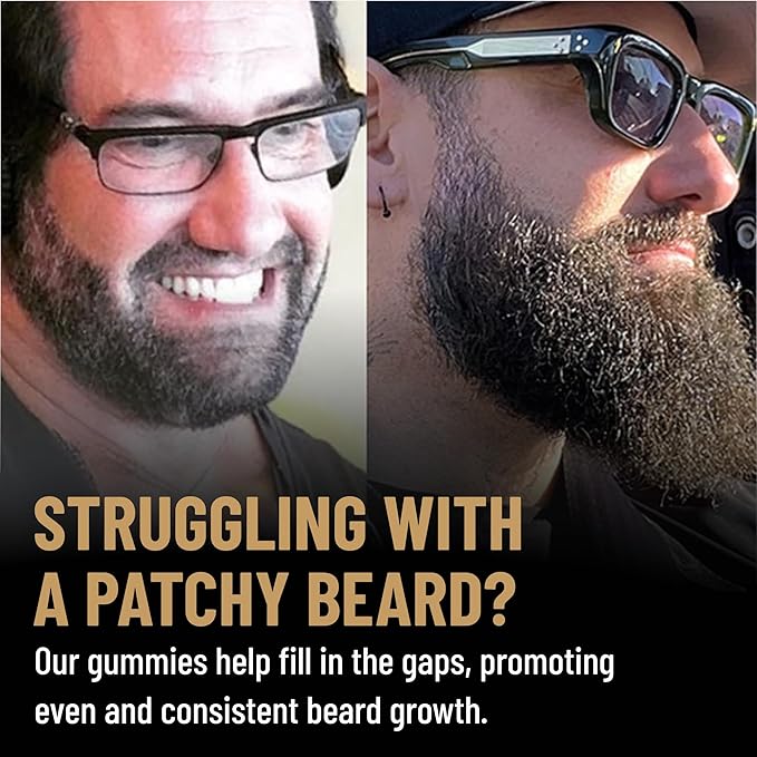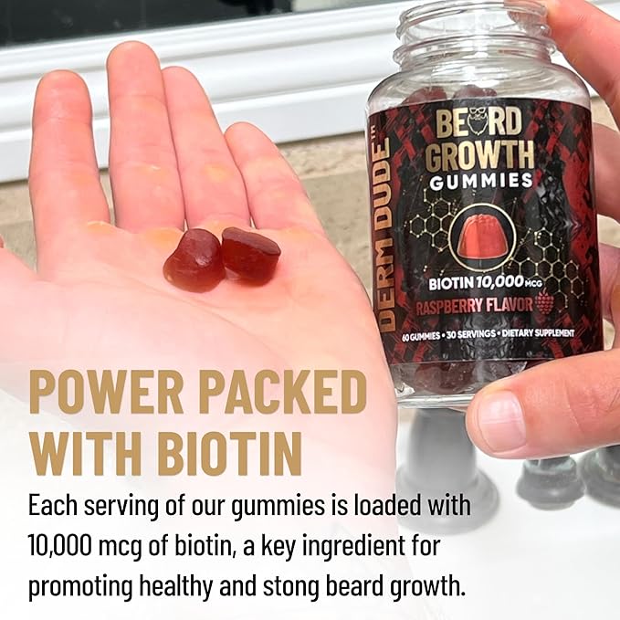 - THICKER, FULLER BEARD GROWTH: Derm Dude Beard Growth Gummies are specifically formulated with 10,000 mcg of biotin to support the growth of a denser, fuller beard. Biotin is known to improve hair strength, encouraging thicker and more robust facial hair.