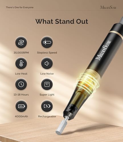MelodySusie Professional Nail Drill, 35000 RPM Electric Nail File for Acrylic Gel Nails Removal, SM200F Portable Efile Coreless Motor for Quiet & Durable, Cordless Nail Kit with Bits for Salon & Home