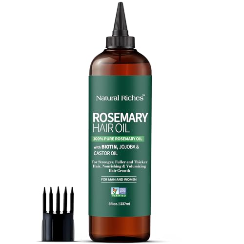 Natural Riches 100% Pure Premium Rosemary Oil For Hair Growth Infused With Biotin & Vitamin E Jojoba & Castor Oil Hair Strengthening Treatment | Nourishing & Volumizing | Non GMO Verified 8 Fl oz.
