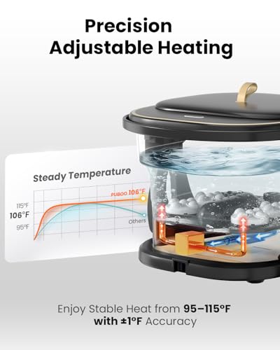 - Consistent and Adjustable Heating: Enjoy a customizable foot bath massager with heat, offering temperatures from 95°F to 115°F with 1°F precision for ideal comfort. It maintains consistent warmth and reheats automatically—no need to add hot water.