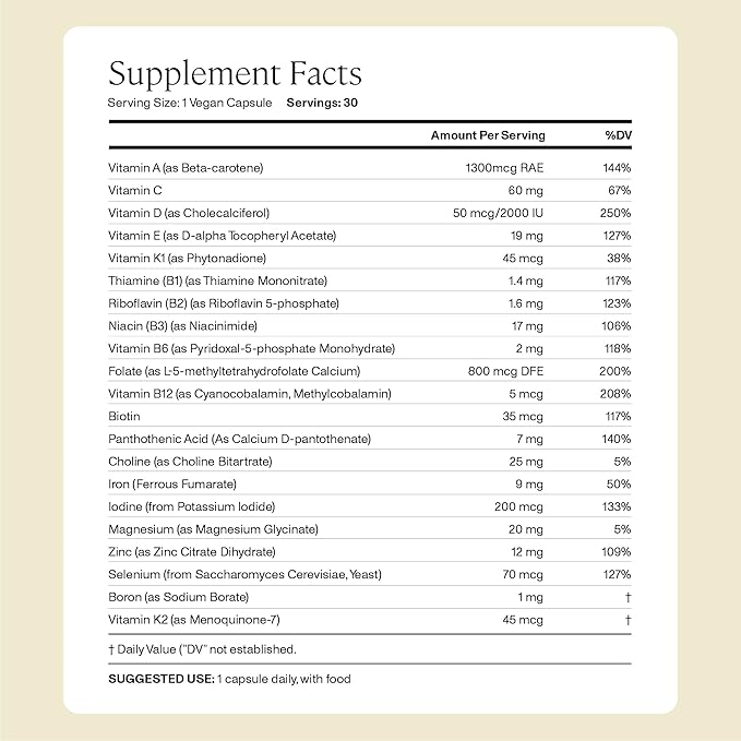- BREASTFEEDING: The body demands higher levels of specific nutrients while breastfeeding such as vitamin B12, D, iodine and zinc, as these nutrients are passed directly through breastmilk to baby, often leaving mom depleted. Anya's Postnatal Multivitamin replenishes depleted stores to ensure adequate intake for baby and to get mom back to baseline.