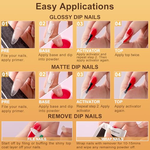 - Easy to Use: Designed for simplicity, this dipping powder nail kit offers an effortless application process. Compared to traditional acrylics, this dip powder starter kit saves you about 30% of your time. With 48 different nail powder colors to choose from, you can easily express your unique style.