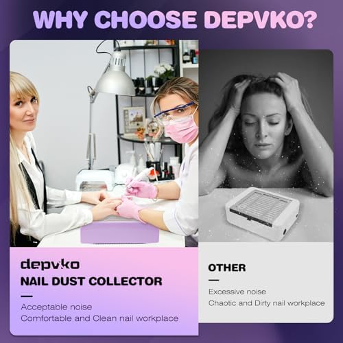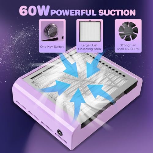 Nail Dust Collector Machine Professional: 60W Powerful Dust Collector Nail Tech Vacuum Fan Extractor with Reusable Filter and Brush for Acrylic Gel Nail Polish Manicure Pedicure Tool (Purple)