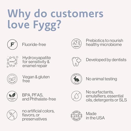 - Safe, Clean, & Gentle Formula: Created by functional dentists with top-quality, clean ingredients, our nano-hydroxyapatite toothpaste is natural and free from oral microbiome disruptors like essential oils, emulsifiers, detergents, and SLS. The Fygg toothpaste is fluoride-free and maintains your mouth's delicate ecosystem while providing exceptional oral care. Formulated to restore a healthy PH balance and support your mouth’s natural oral microbiome