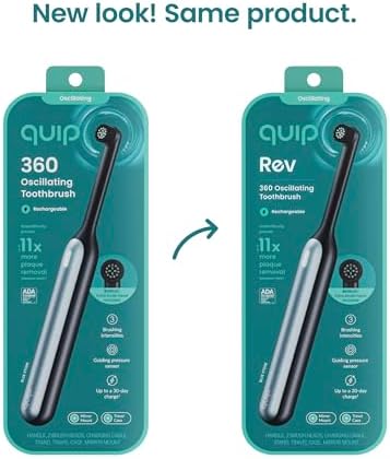 Quip Rev 360 Oscillating Rechargeable Electric Toothbrush with Extra Brush Head - Soft Bristles, Pressure Sensor, 3 Intensities, 30-Day Battery Life, Travel Case, Mirror Mount - Blue Stone