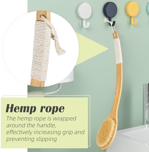- Considerate Design -The twined hemp rope on the curved handle is greener and non-slip that is not easily falling when you having a bath. You can hanging the back body brush in bathroom, very convenient for you to use. It will be a perfect home gift.