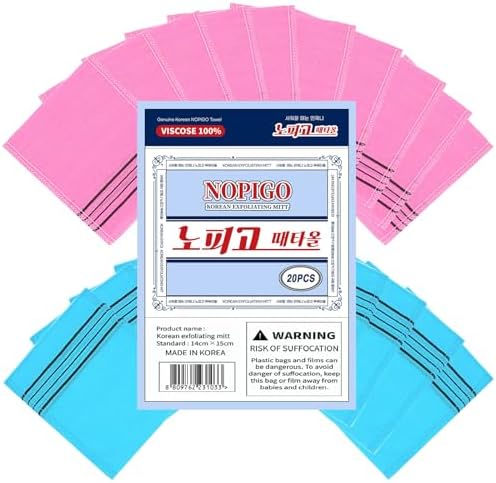 Korean Asian Exfoliating Bath Washcloth Mitt for Remove Dead Skin.Exfoliating Body Scrubber.Exfoliating Gloves for Body Scrub (blue10 pink10)