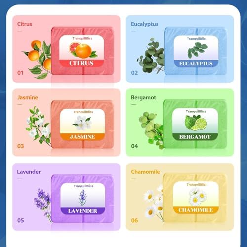 - 【Scent-Sational】 TranquilBliss shower steamers is a 6 pack x 2 of steamers with 6 unique scents: Eucalyptus, Jasmine, Lavender, Chamomile, Citrus and Bergamot. Choose whatever scent fits your mood