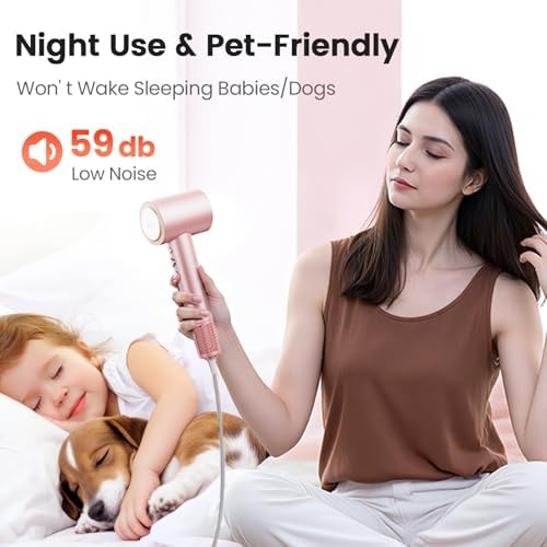 - Thermo Control & Low Noise: The AirJetz blow dryer with diffuser is equipped with an advanced thermal control system that measures the airflow temperature more than 100 times/s, ensuring it even & precise, no more overheating damage to your hair. Additionally, the professional hair dryer for women adopts professional air duct design and excellent sound insulation technology, with a noise value of only 59db, so you won't disturb others when you use it.