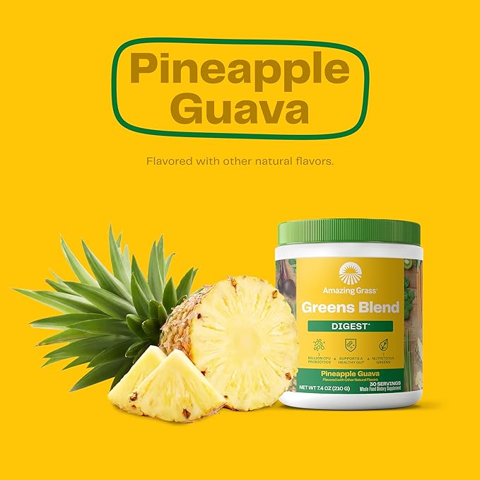 Amazing Grass Greens Blend Digest: Super Greens Powder Smoothie Mix for Digestion Support with Organic Spirulina, Chlorella, Beet Root Powder, Digestive Enzymes & Probiotics, 30 Servings
