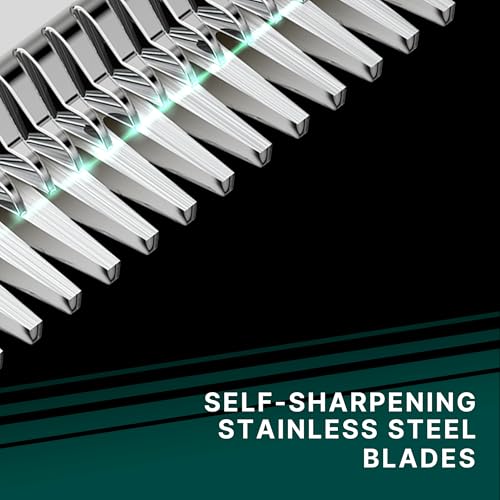 - SELF-SHARPENING STAINLESS STEEL BLADES give you barbershop-quality cuts and stay sharp, delivering consistent cuts every time.