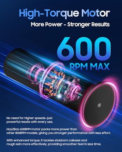 - Adjustable Speed: Customize your callus removal with adjustable speeds (0-600 RPM) for safe and effective exfoliation.Helps users find the most comfortable and effective setting,enhancing the overall experience and making the foot care process more enjoyable