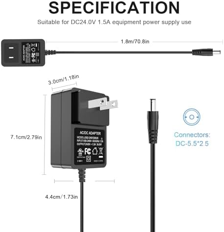 - [ 24V Nail Polish Dryer Power Cord Overview: ] 24V power adapter Worldwide Input Voltage: AC 100V-240V 50-60Hz Output Voltage: DC 24V, 24V Power Cord / Cable Length: 6 Ft (1.8m),DC plug size: 5.5*2.5mm, which is not suitable for other specifications of the interface
