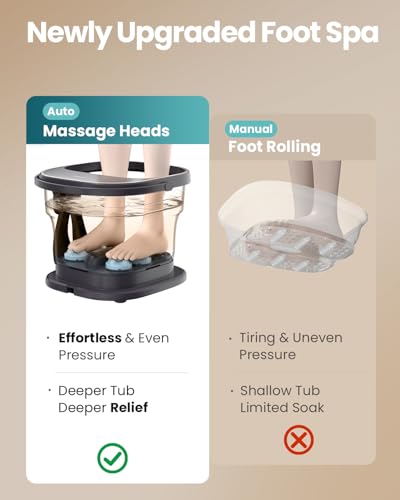 - Wireless Remote for Effortless Foot Spa Control: Use the included remote to easily adjust heat, massage, and timer settings. This quiet electric foot bath spa ensures a soothing, hands-free home wellness experience.