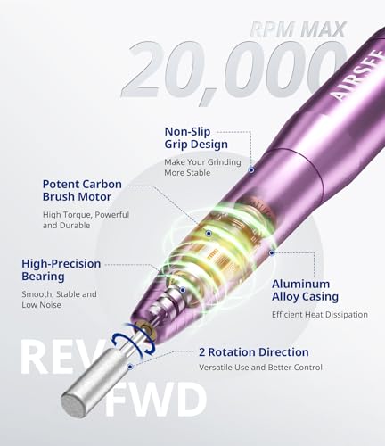 - Dual-Directional & Durable Design: The nail filer is crafted with ergonomic bidirectional rotation and is made from high-temperature resistant aluminum alloy for quick heat dissipation and a secure grip. Whether you're left-handed or right-handed, you’ll enjoy a comfortable experience