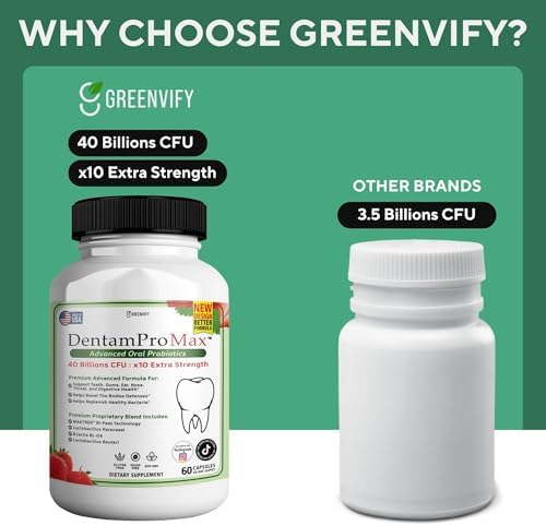 - Advanced Oral Health Support GREENVIFY DentamPro Max delivers 40 billion CFU of advanced oral probiotics, specifically formulated to support healthy gums and teeth. Promote optimal dental hygiene with these easy-to-take capsules.